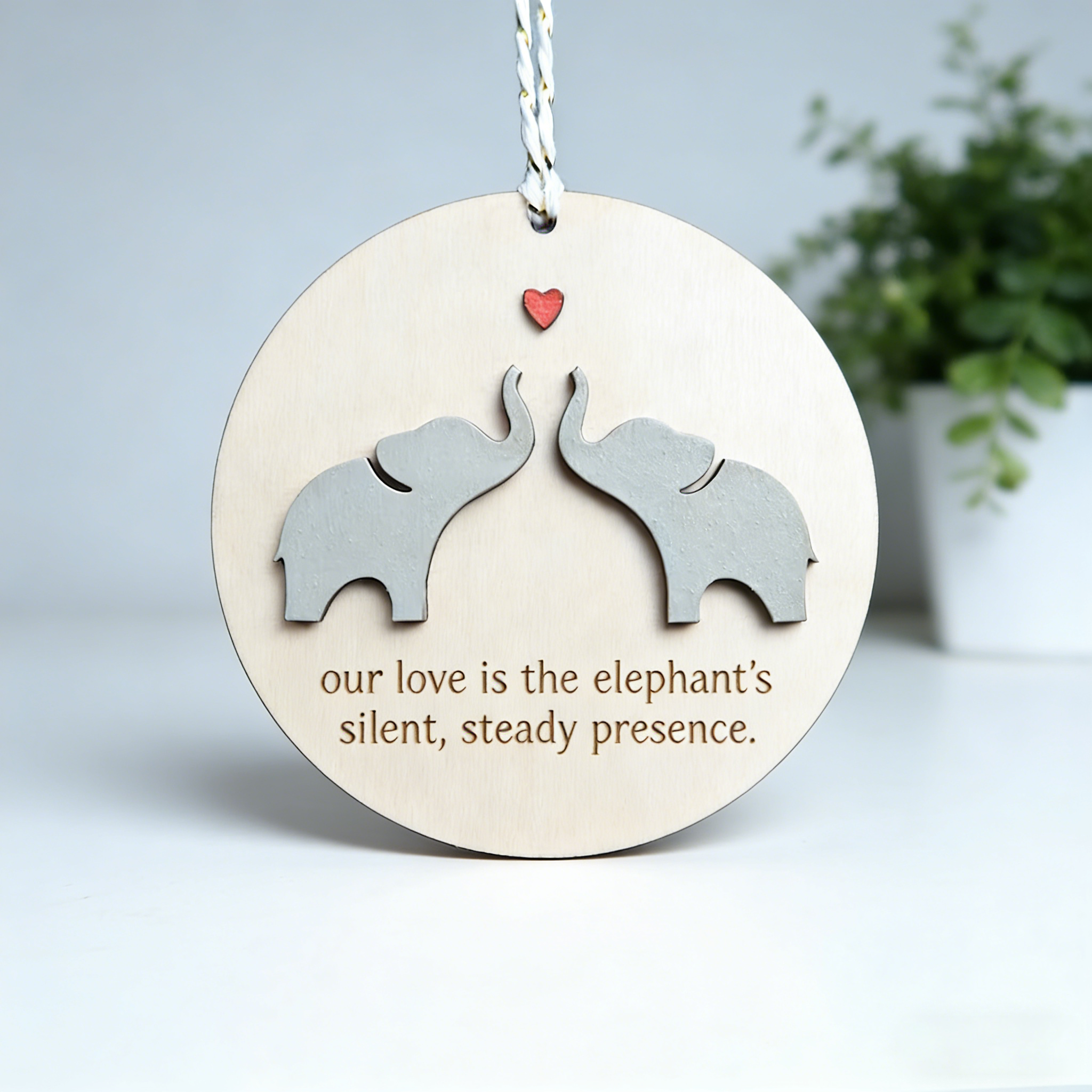 Every curve of the trunk represents protection and connection. The subtle heart shape formed by the ears whispers a quiet “I love you” that only the two of you understand.