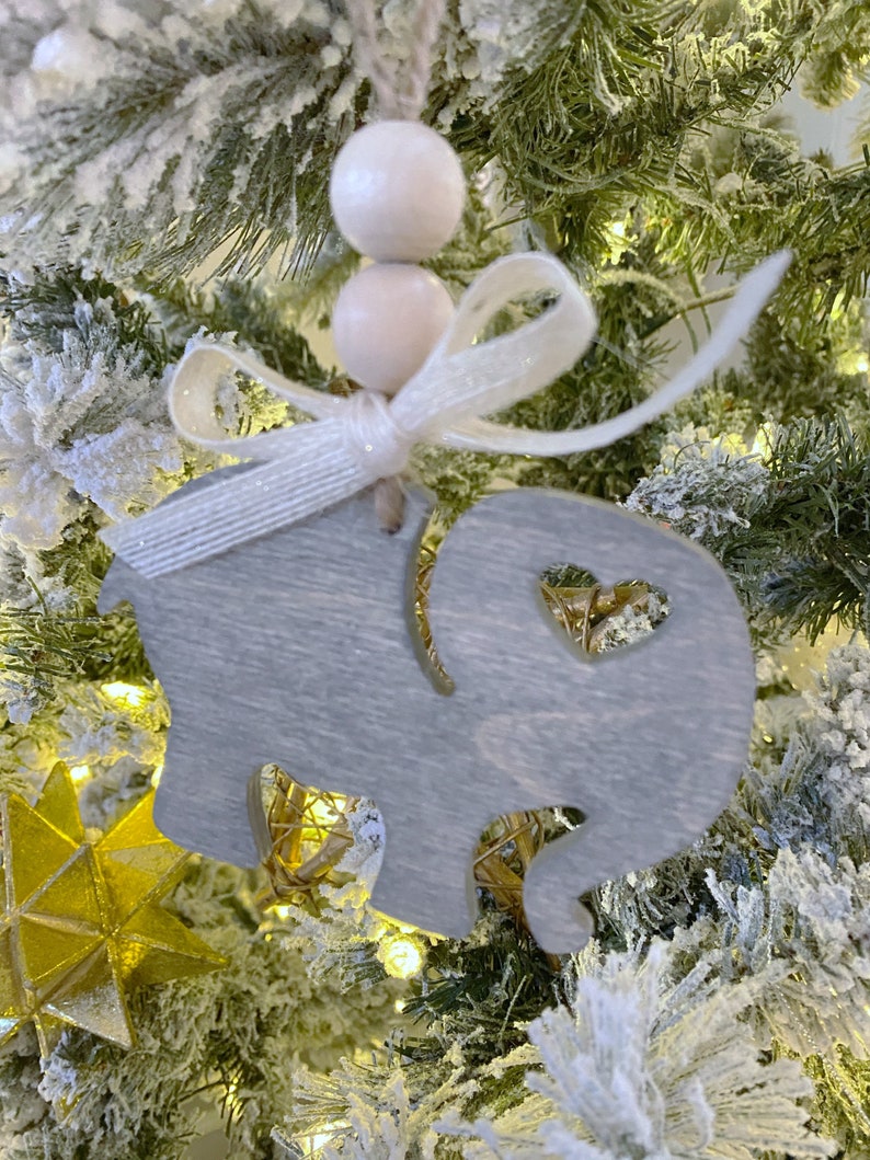 Each hanging elephant ornament is fully custom made and cut, hand-stained, and finished. Since each elephant is cut, crafted and then stained and finished from quality wood and stain, no two signs are ever the same, and no attempt is made to hide, fill or cover all imperfections or knots. In fact, imperfections add to their one-of-a-kind character and are celebrated in all their glory!