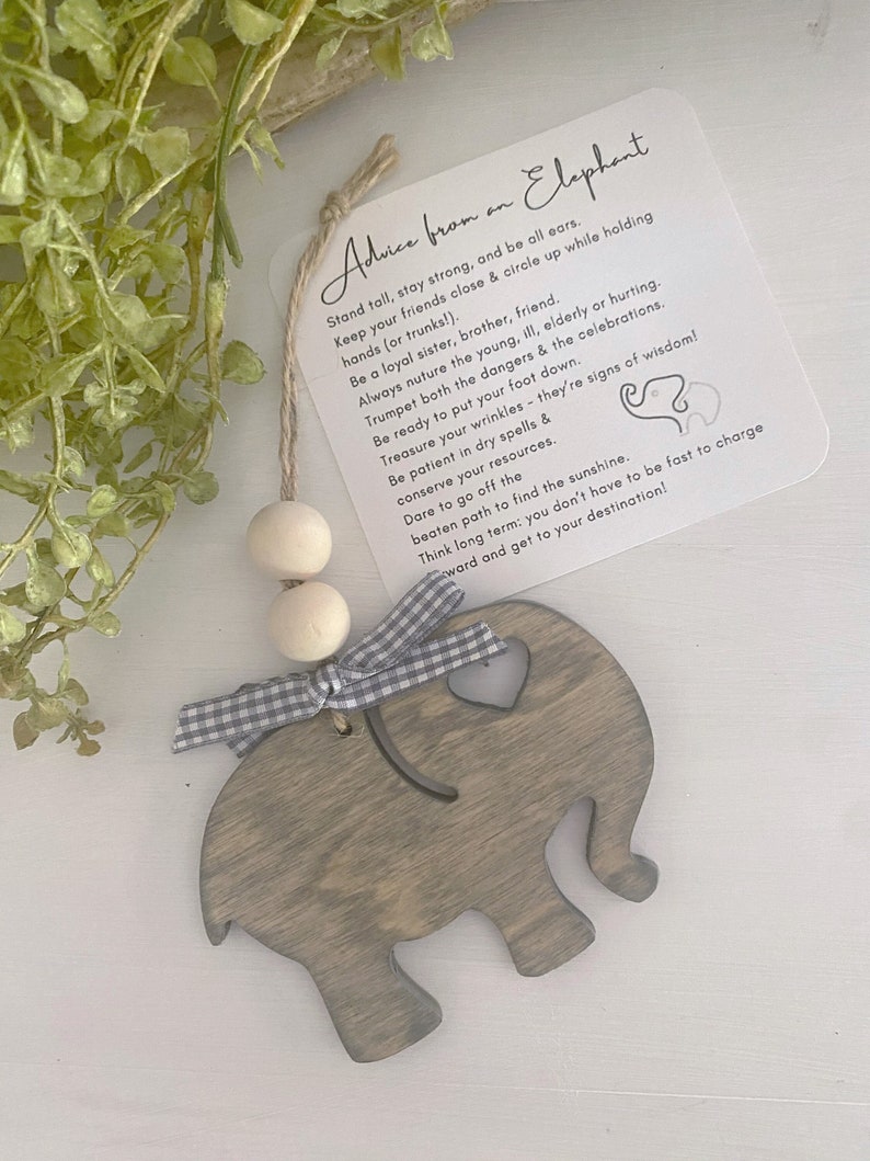 Our new Advice from an Elephant friendship wood hanging ornament makes a perfect friend, graduate, girlfriend tribe, or sisterhood inspirational, encouragement or gratitude gift!
