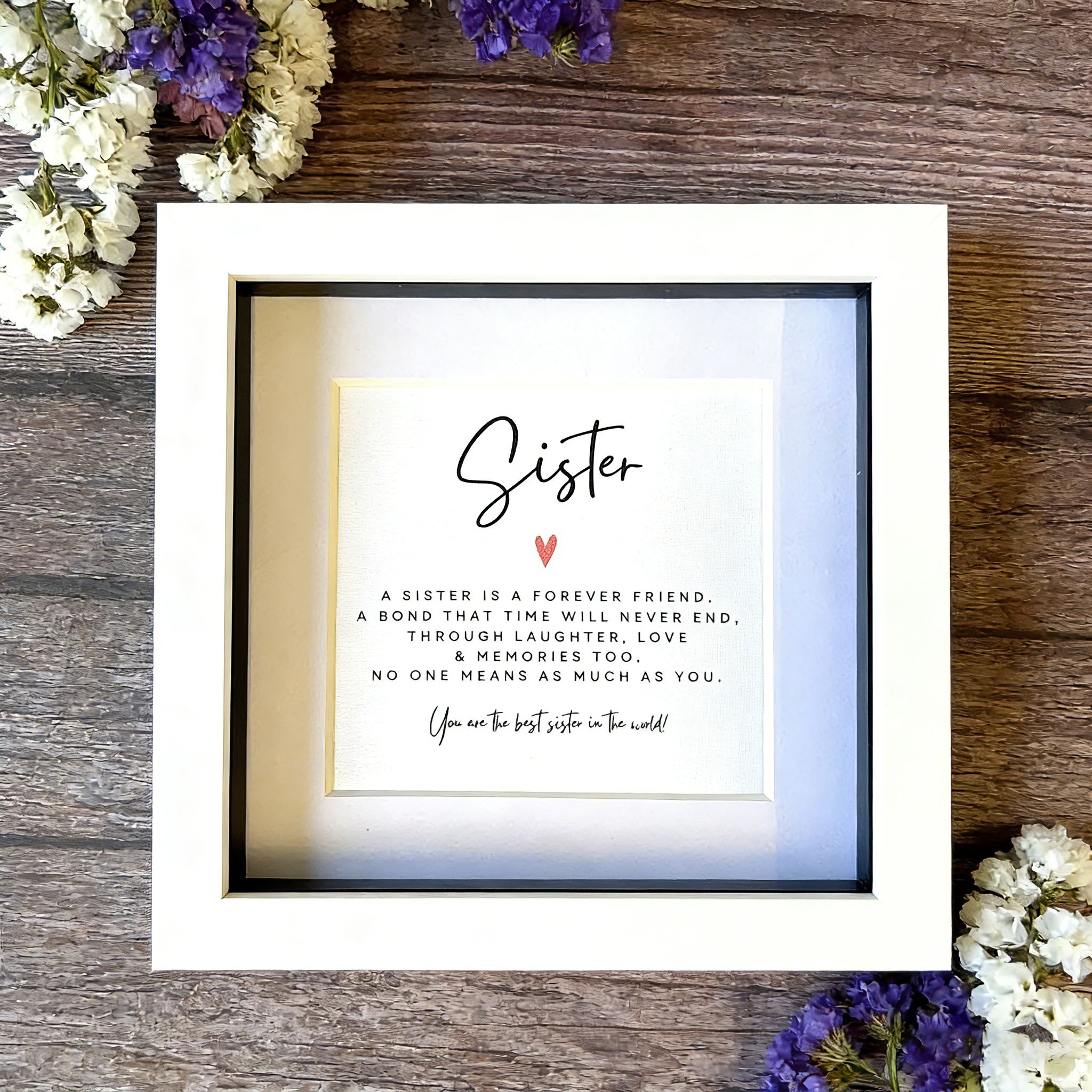 This beautifully personalised sister gift is a timeless keepsake, celebrating the love, laughter, and cherished memories shared between you and your special sister.
